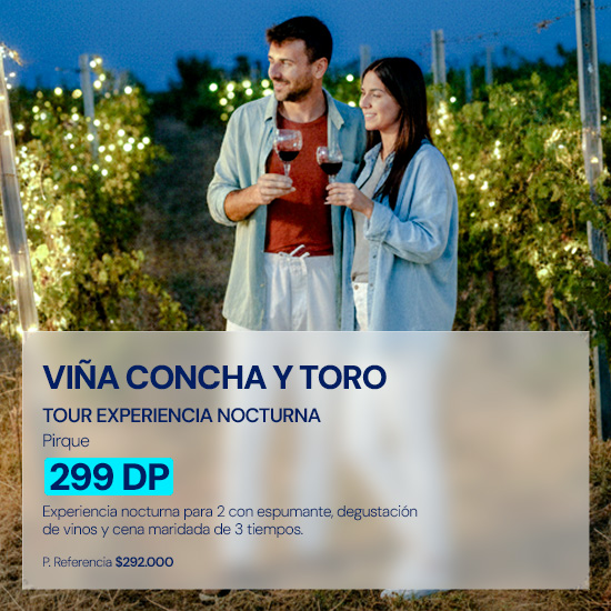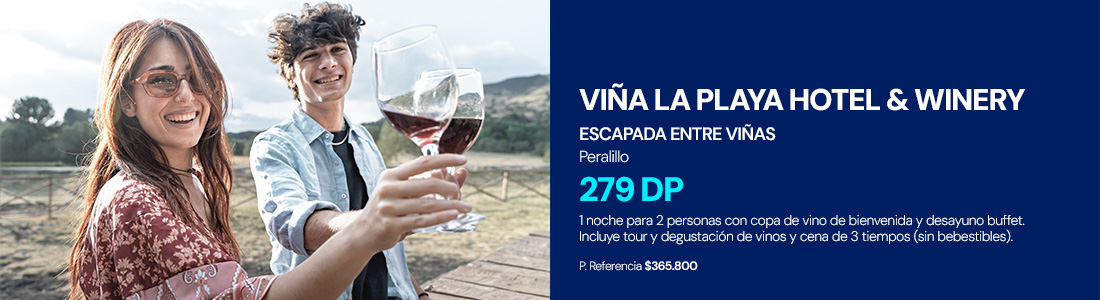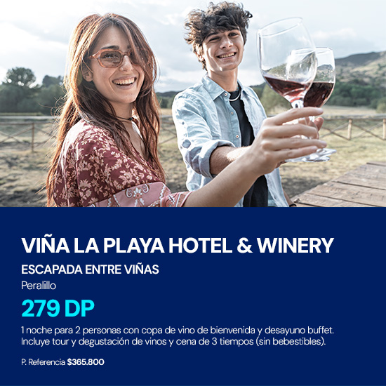 Descubre escapadas, tours y experiencias únicas en Chile: viñas, programas gastronómicos, hoteles boutique y aventuras en el sur, pensadas para que vivas momentos inolvidables. Aprovecha tus Dólares-Premio Banco de Chile y canjea hasta el 100% del valor, o combina Dólares-Premio y pesos, pagando la diferencia con tus Tarjetas de Crédito del Banco de Chile. No existe mínimo de Dólares-Premio para canjear y podrás definir la forma de pago al finalizar tu compra en Travel Pay. Explora, canjea y vive tu próxima experiencia.